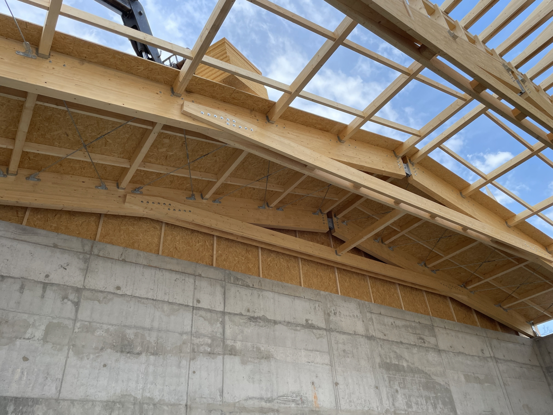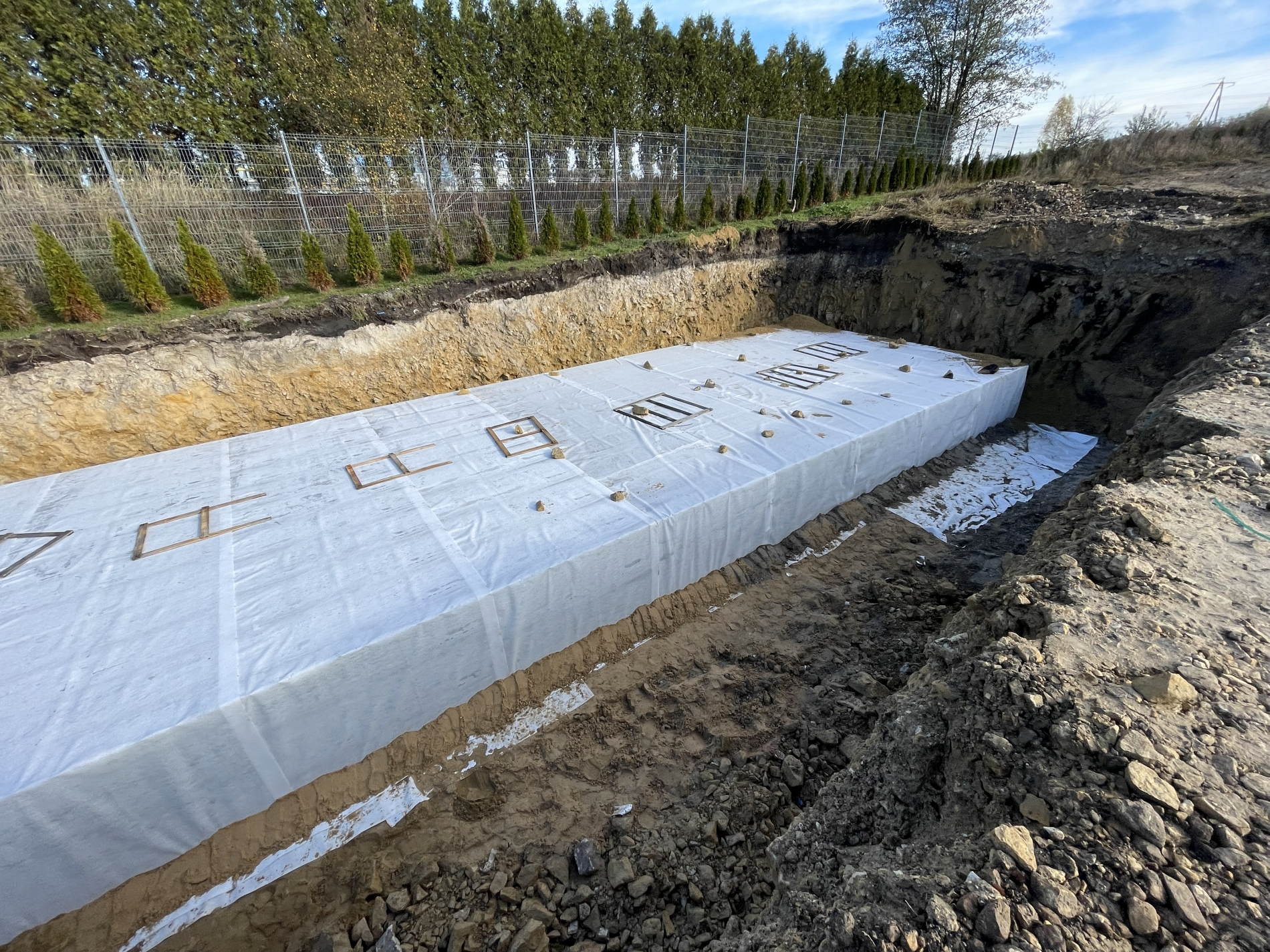 Dokumentacja procesów budowlanych: od fundamentowania i zbiorników podziemnych, po montaż szkieletów stalowych i więźby dachowej.